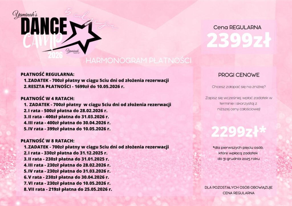 Zapraszamy na 5 edycję Yaminah’s Dance CAMP – corocznego obozu tanecznego organizowanego przez Ninę YAMINAH Batusiewicz!